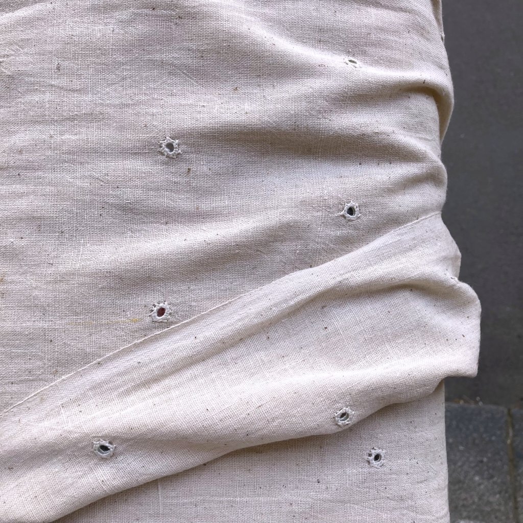 Látka je ručně barvená. Pro pár praní vložte látku do bubnu pračky na 30 nebo 40 stupňů s hrstí kuchyňské soli. Tím se barvivo zafixuje, aby nepouštělo.