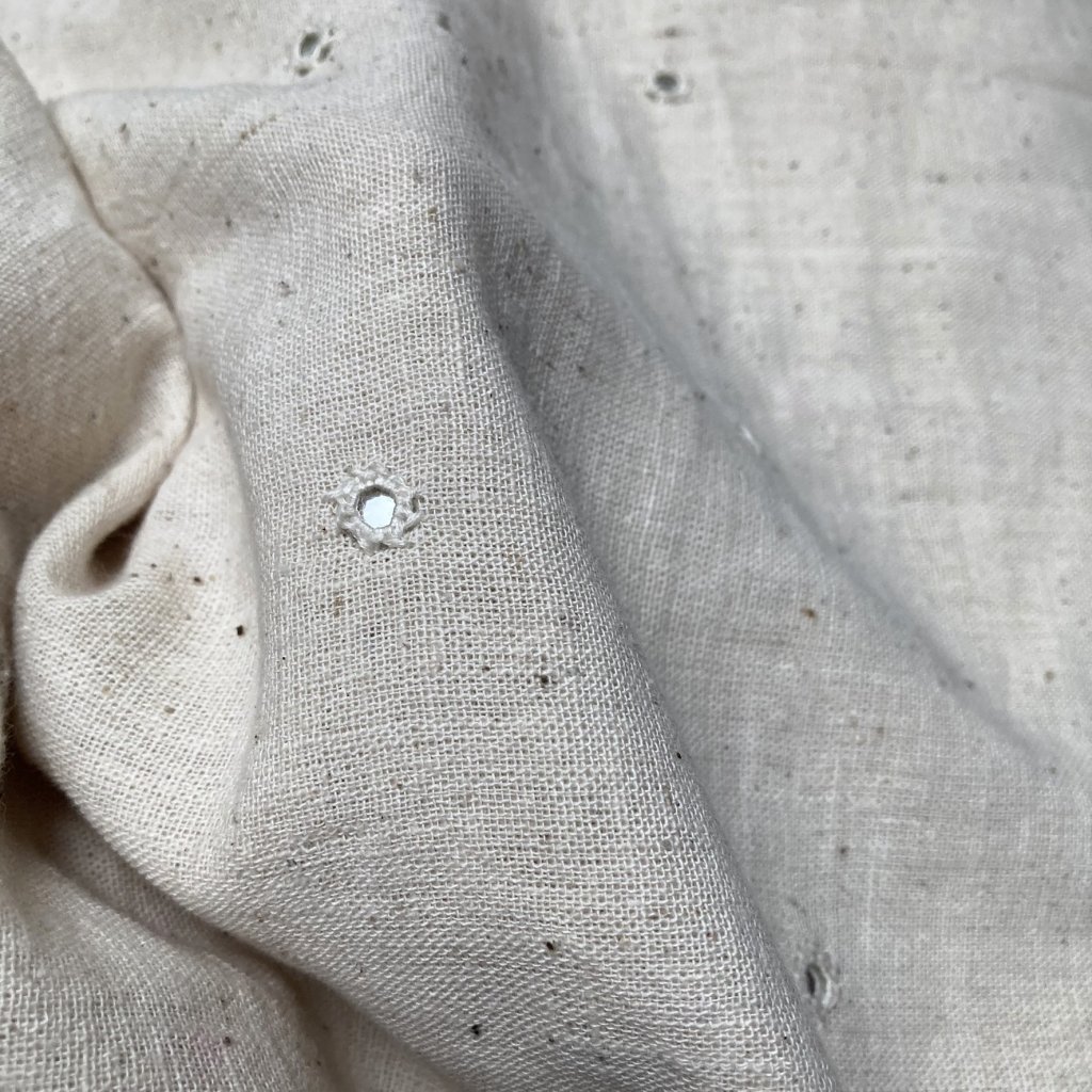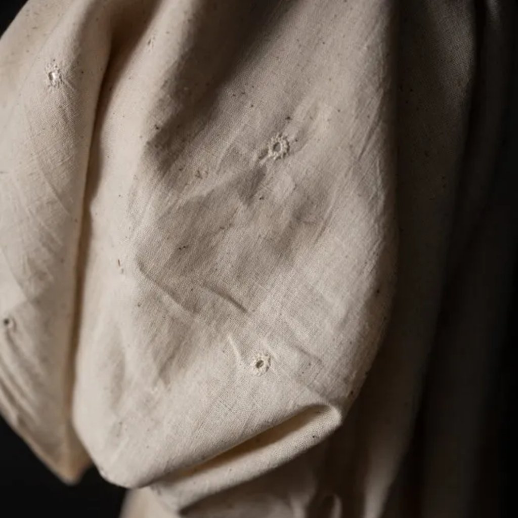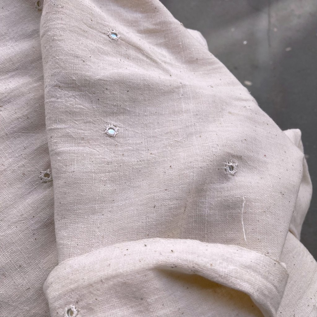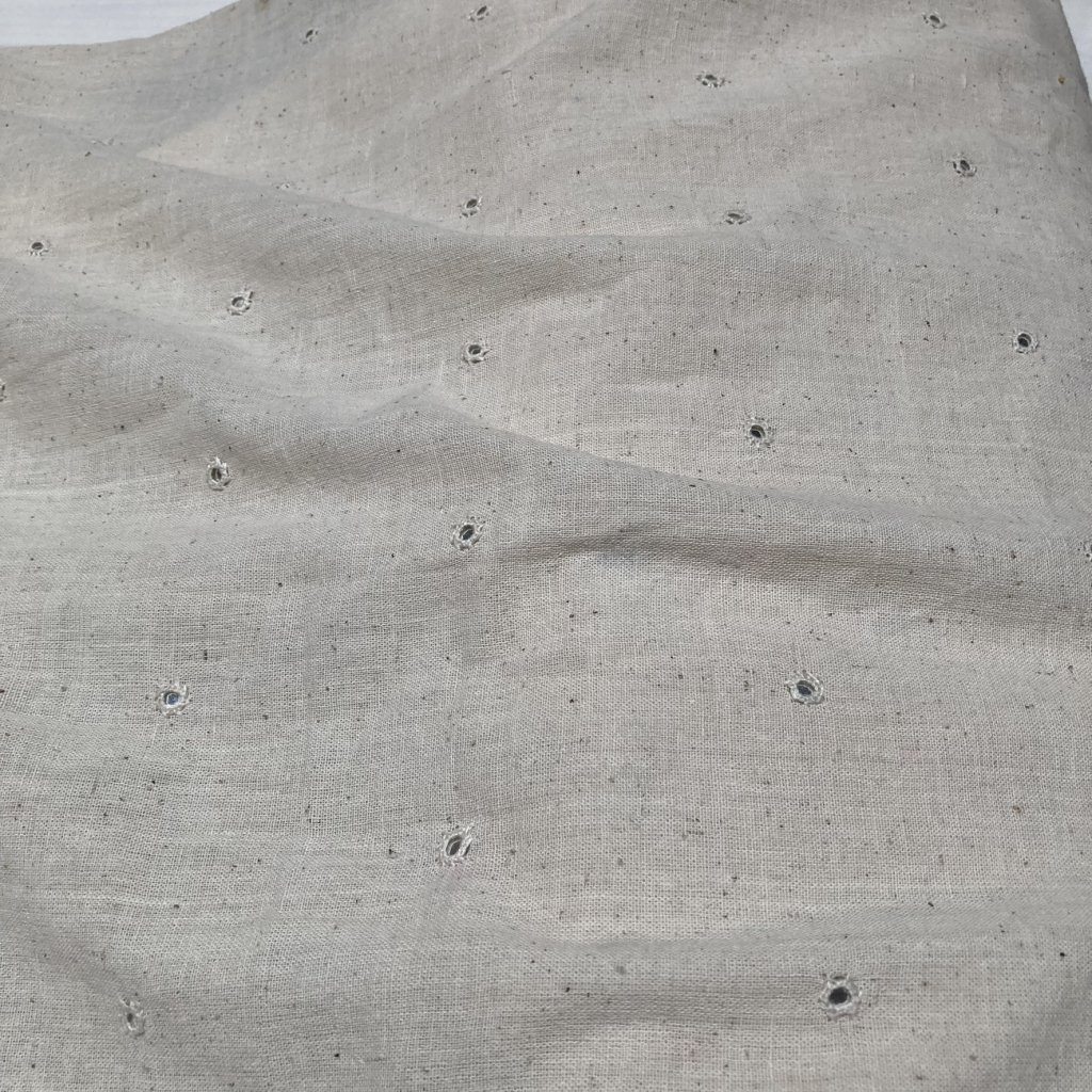 Jedinečná ručně tkaná látka z přírodní bavlny Kala v barvě ecru. Na látce jsou ručně vyšita skleněná zrcátka zvaná Abhla. Abhla v překladu znamená „kousky oblohy“, takže se oblékněte do látky, která odráží oblohu!