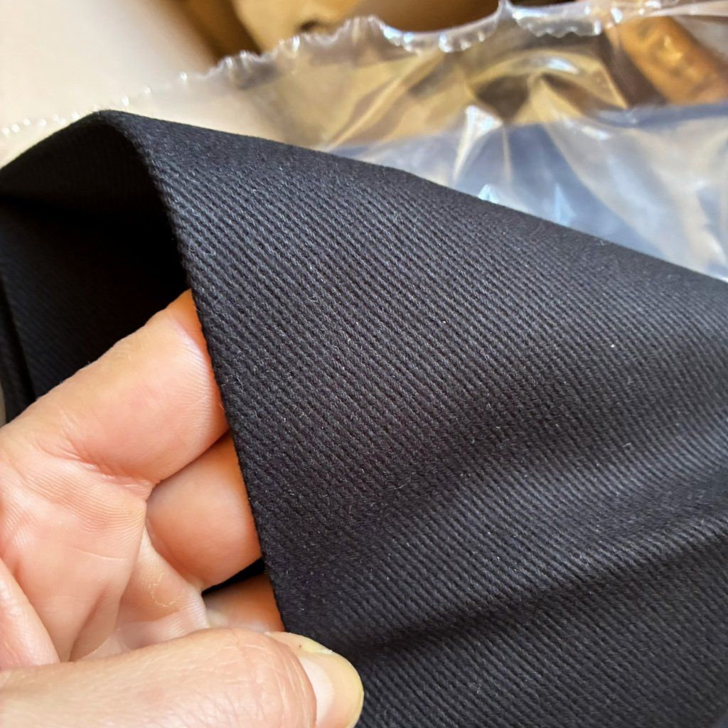 100% bavlna, Standard 100 Oeko-Tex and Better Cotton Initiative (BCI) certified, gabardén kepr vazba