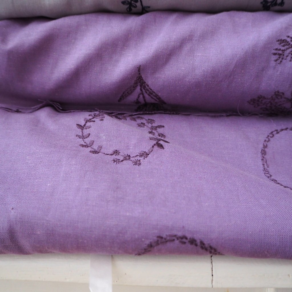 jemné plátno ze směsi bavlny a lnu doplněné krásnou květinovou výšivkou .
