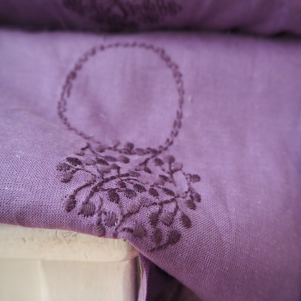 fialové plátno s fialovou výšivkou, klasický tón v tónu, je jemné, decentní.....