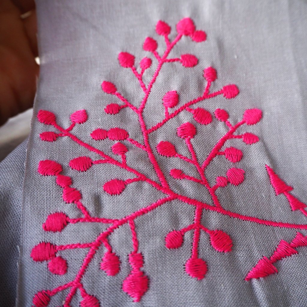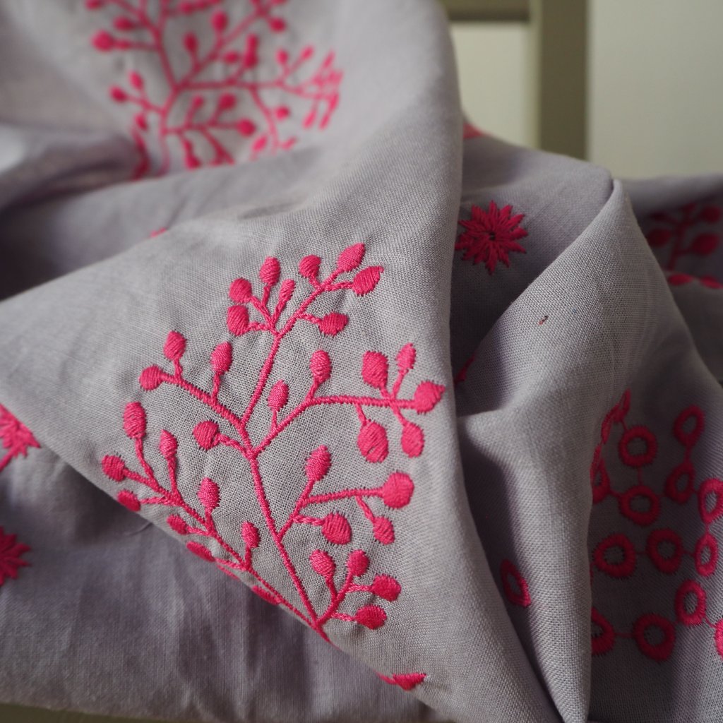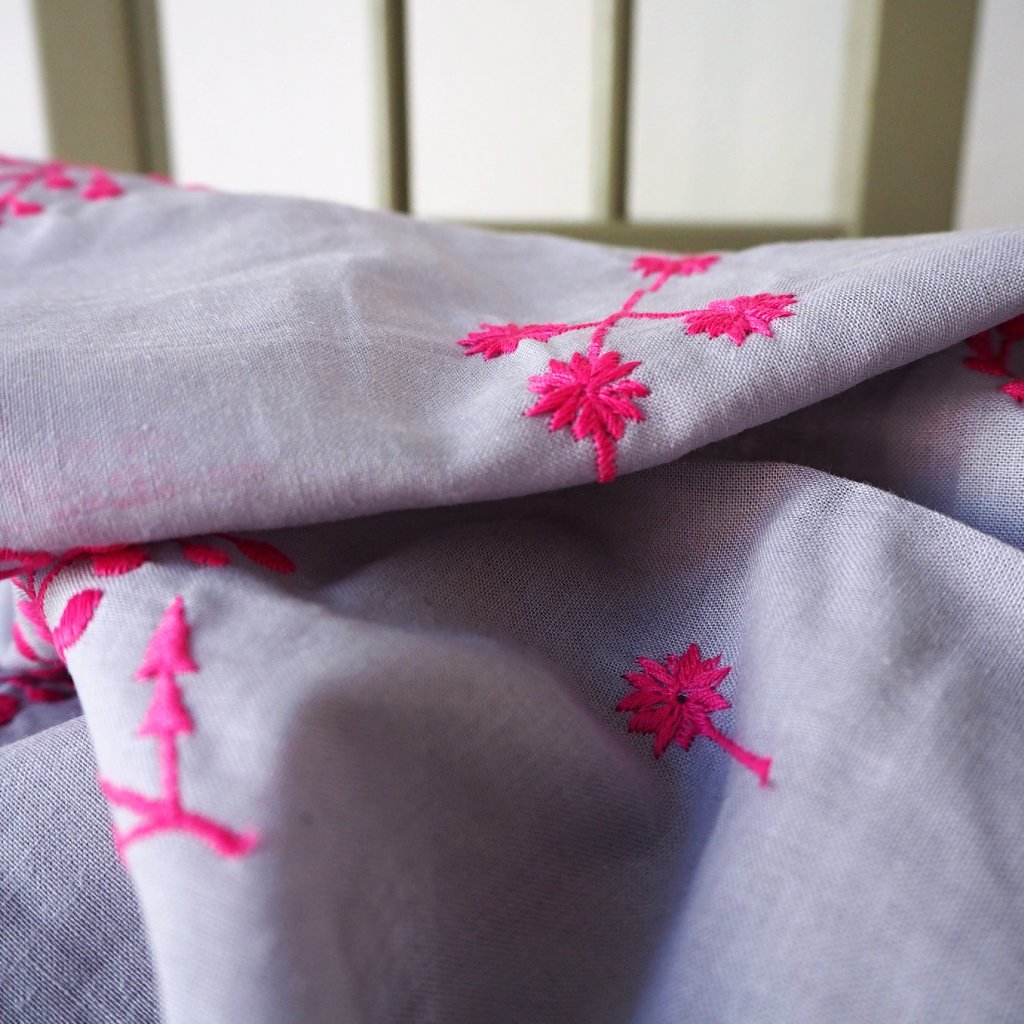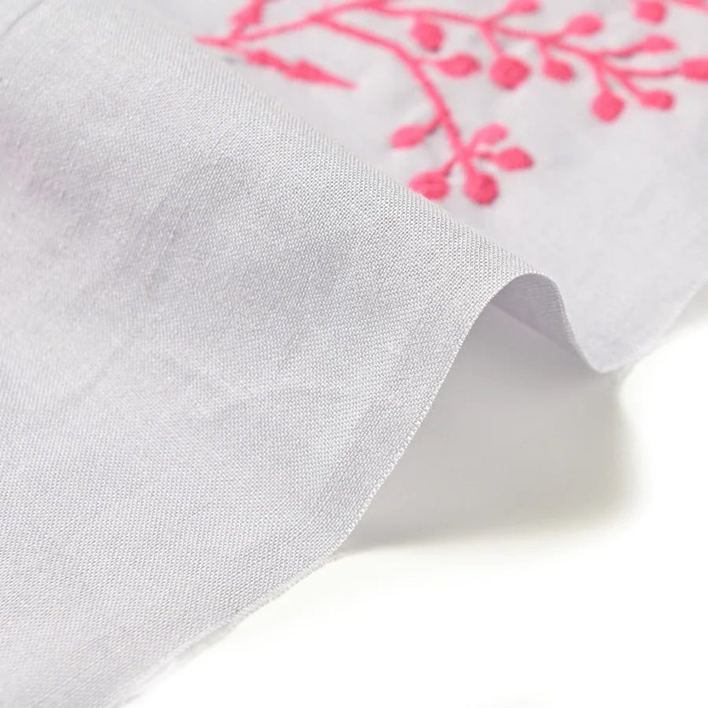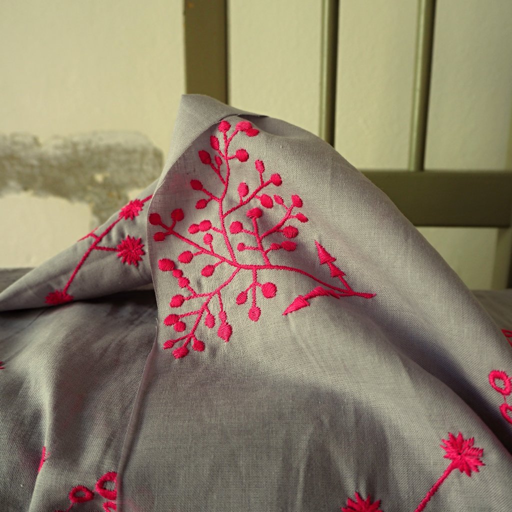 jemné plátno ze směsi bavlny a lnu doplněné krásnou květinovou výšivkou .