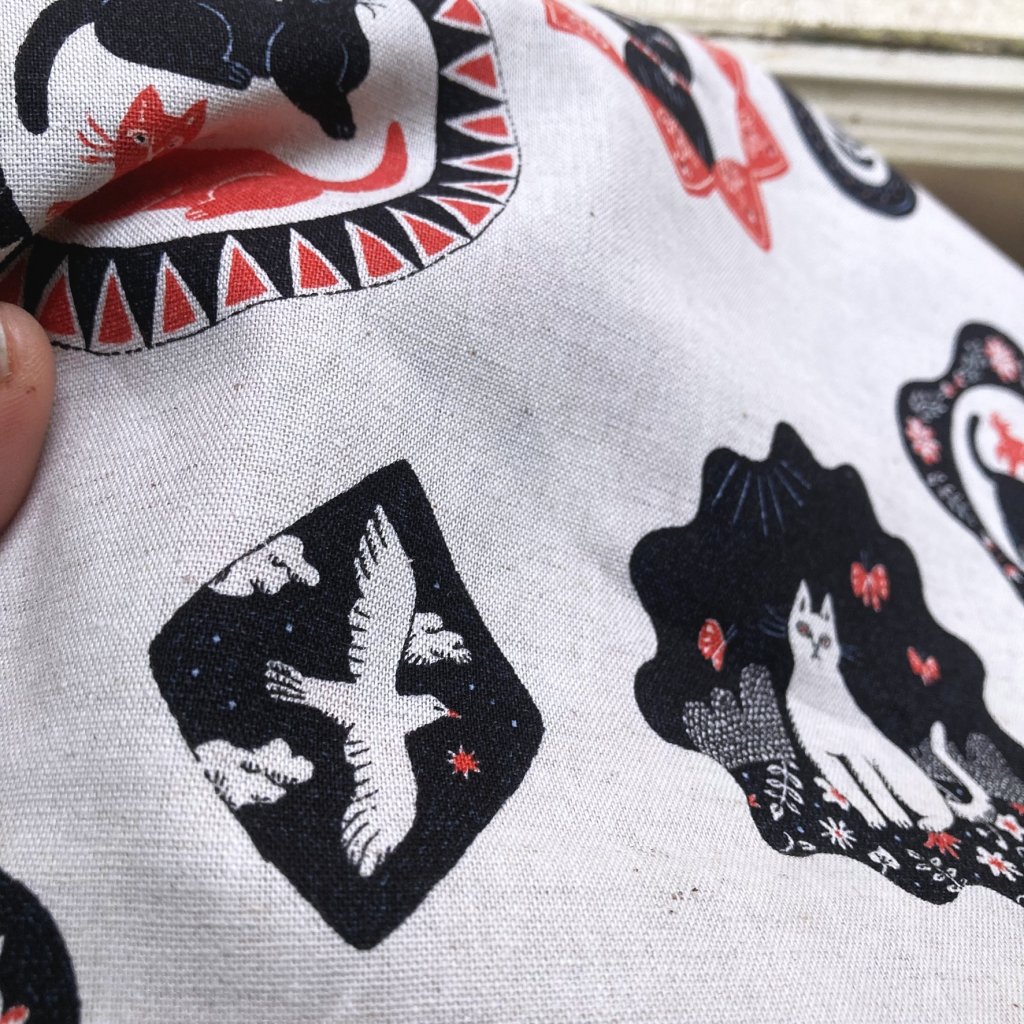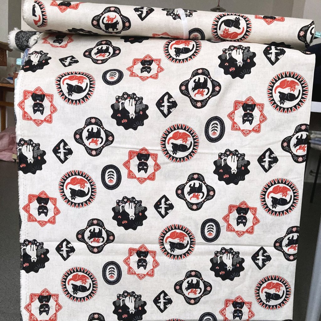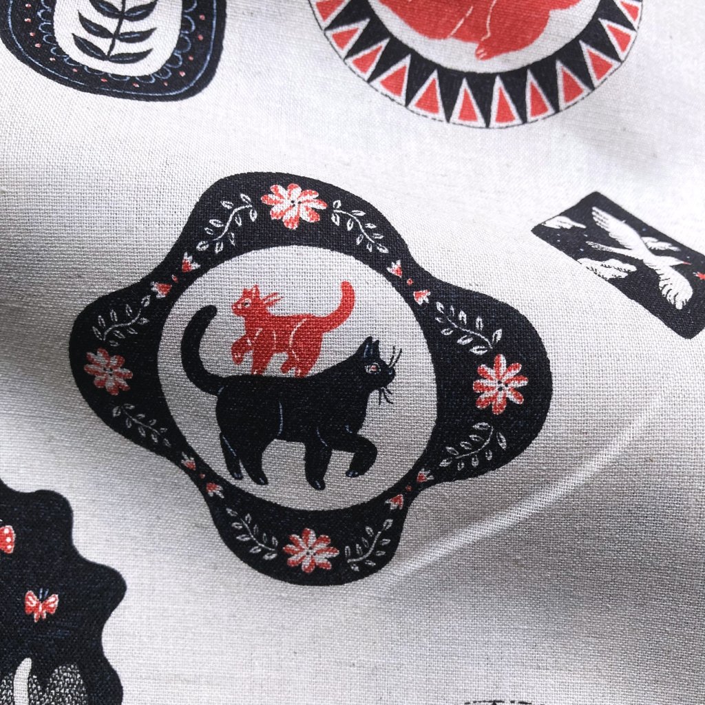 jestli se dát říci, že látka vypráví příběhy, tak je to rozhodně ty s motivy Sanae Sugimoto....kočíč medailonky, ptáček, květina...