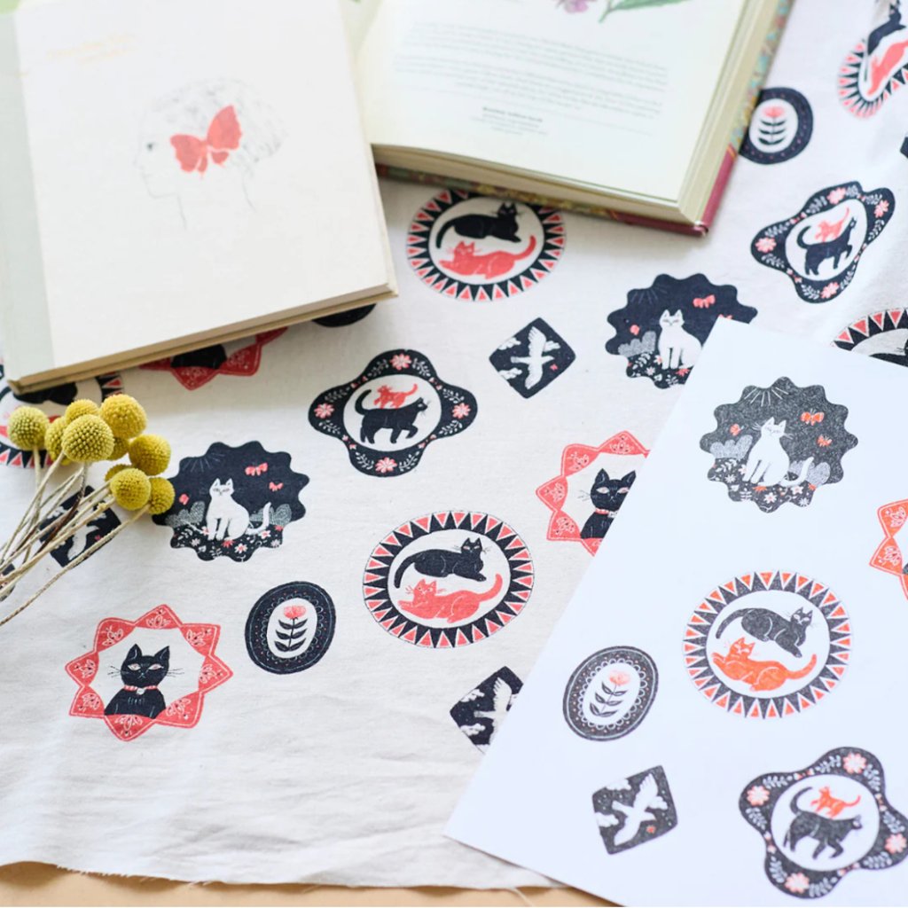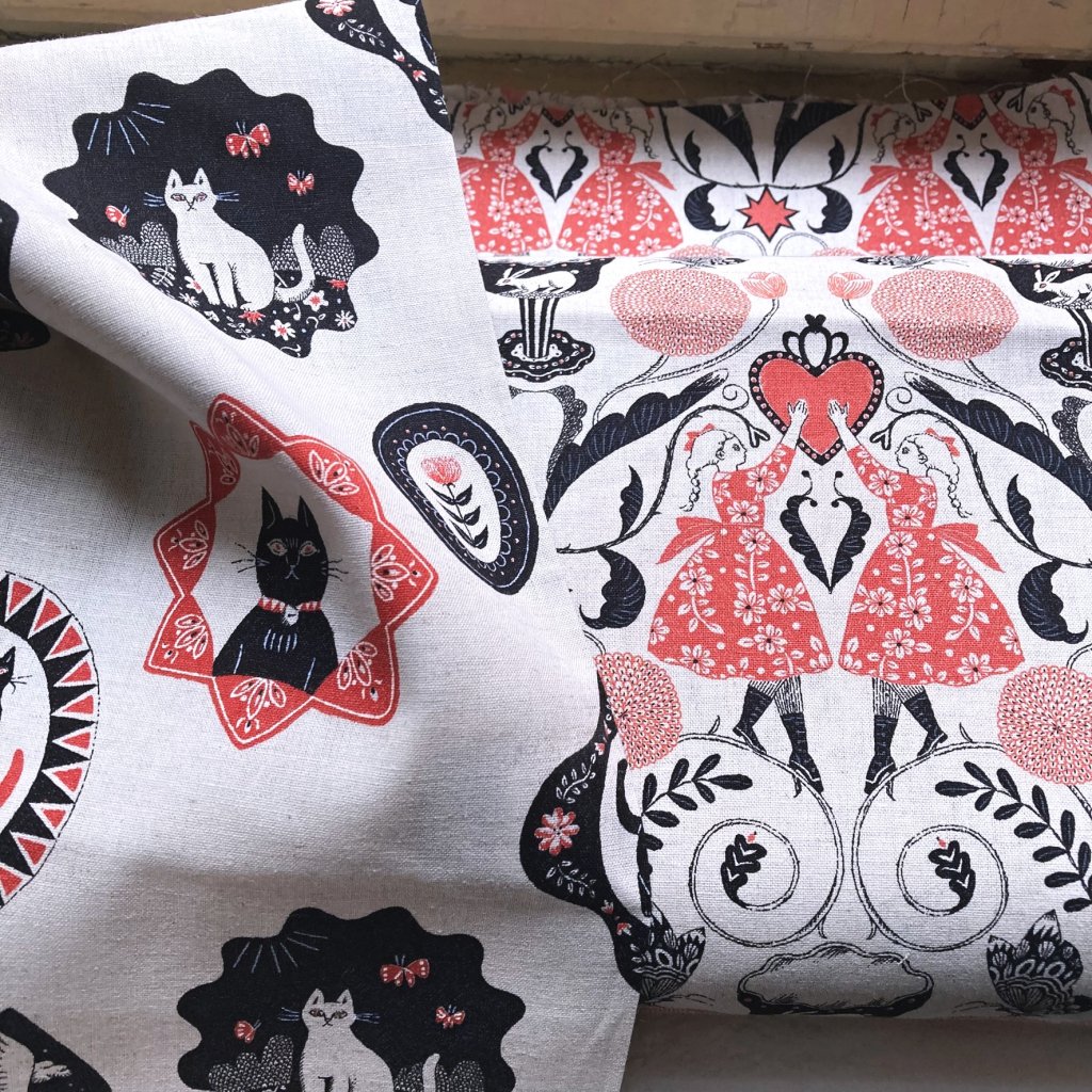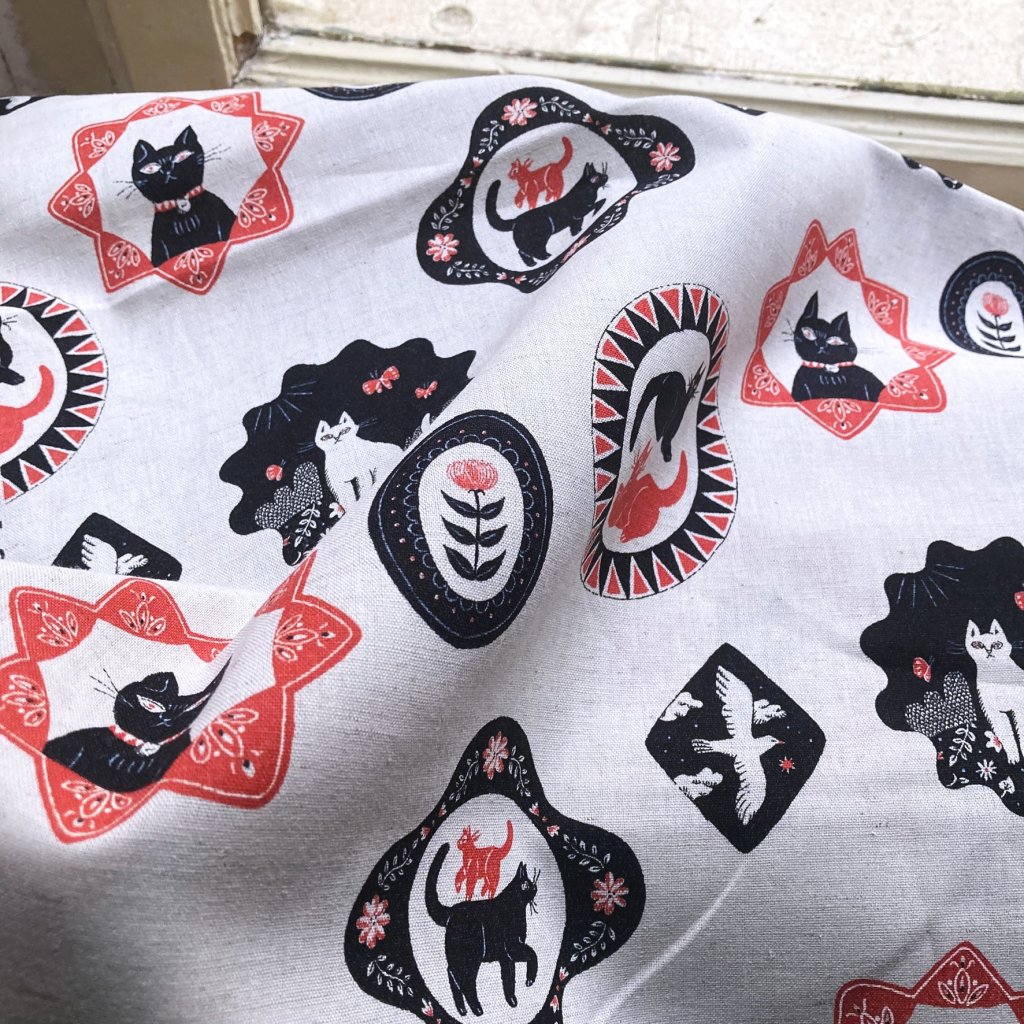 jestli se dát říci, že látka vypráví příběhy, tak je to rozhodně ty s motivy Sanae Sugimoto....kočíč medailonky, ptáček, květina...