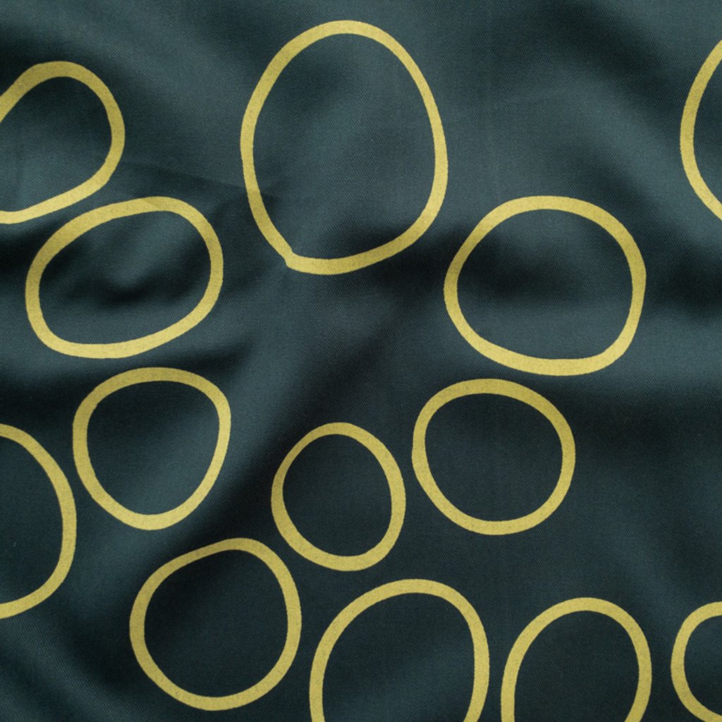 tmavě lahvově zelený podklad, kruhy ve světle zelené....chcete-li ladící galanterii volte barvu forest z dílny francouzského Atelier Brunette