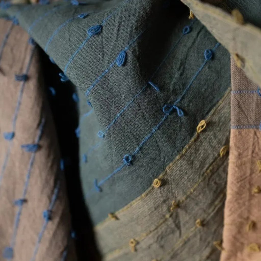 indické látky z produkce Merchant and Mills jsou vyráběny ručně a jsou někdy náchylné k nepravidelnostem ve vazbě nebo tisku, to vše patří k jejich kouzlu a není to klasifikováno jako vada, viz foto