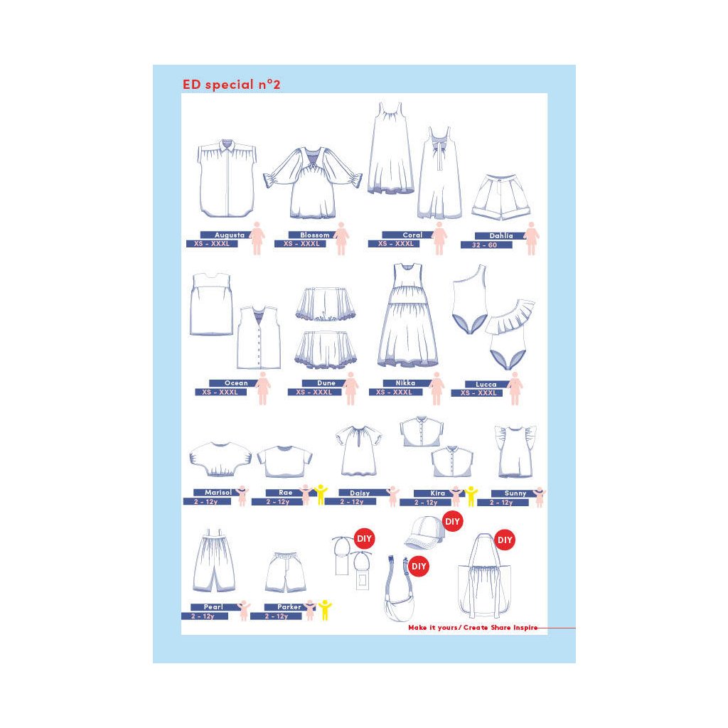 různé úrovně obtížnosti a online podpora šicí komunity. Za střihovou přílohu následuje podrobný návod včetně srozumitelných nákresů.