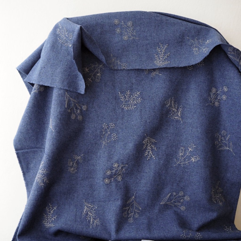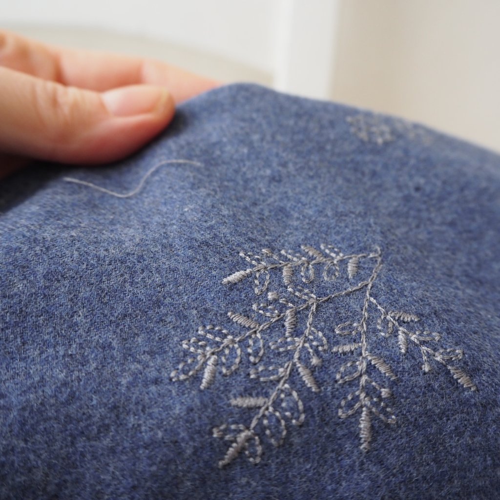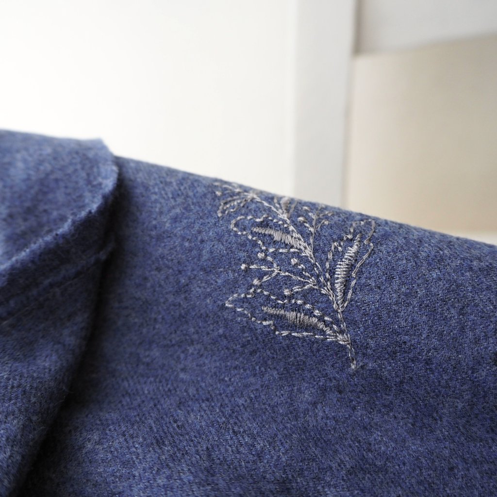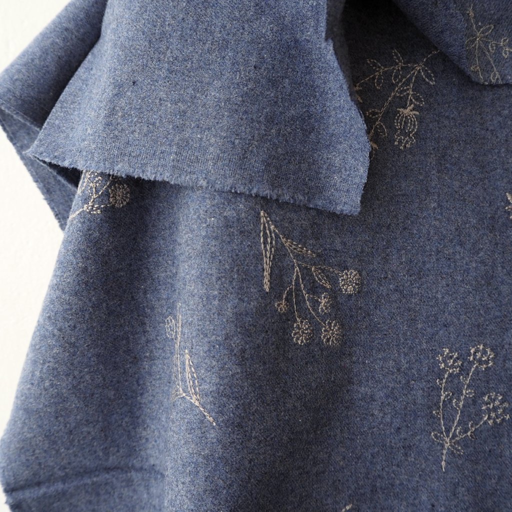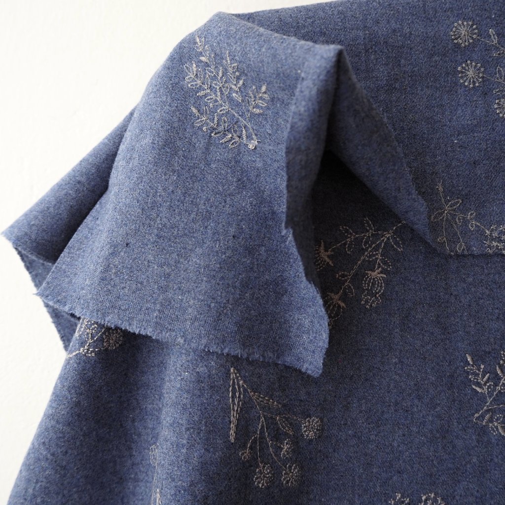 bavlněné plátno s jemným chloupkem, které byste na omak klidně zaměnili s jemnou vlnou. Květinová výšivka v šedé...