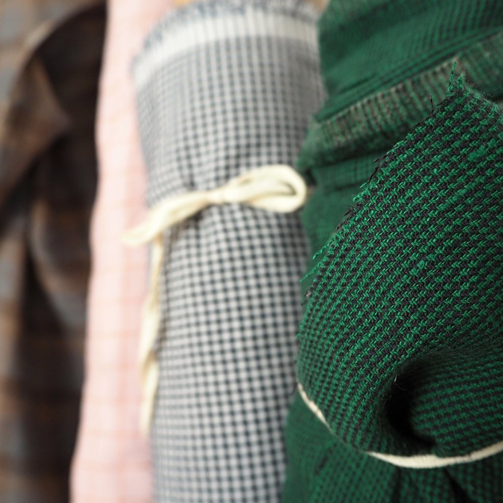 tkaná směs bavlny a lnu, jasně zelená a černá, měkká jemná, dlouhá podzimní sukně si o ni říká.....