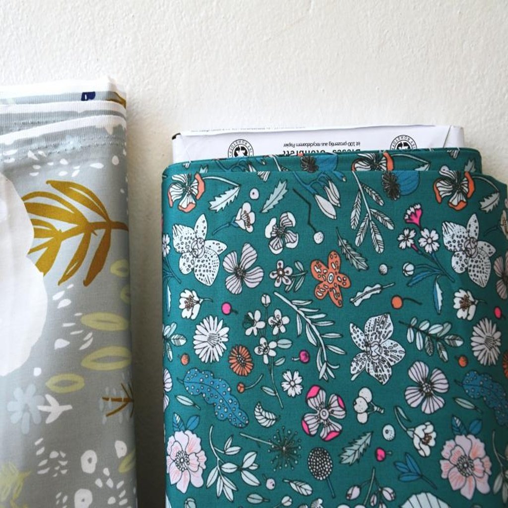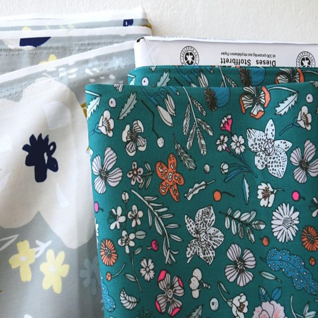 jemné bavlněné plátýnko, květiny, listy, větvičky, bobule......semtam neon barva