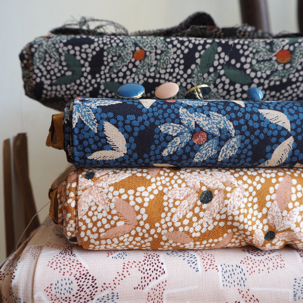 Najdete u nás látky Atelier Brunette právě skladem či jejich galanterii - zipy, knoflíky, šikmé proužky, pruženky