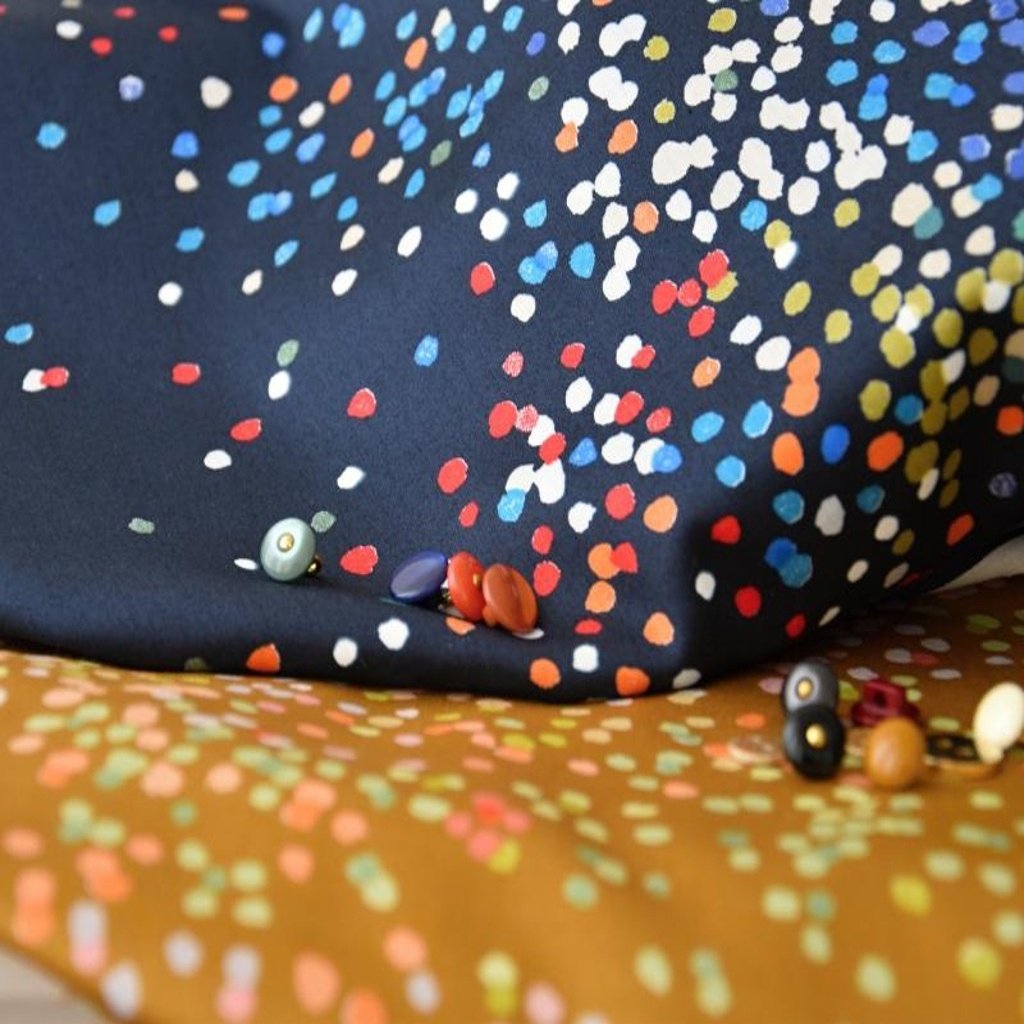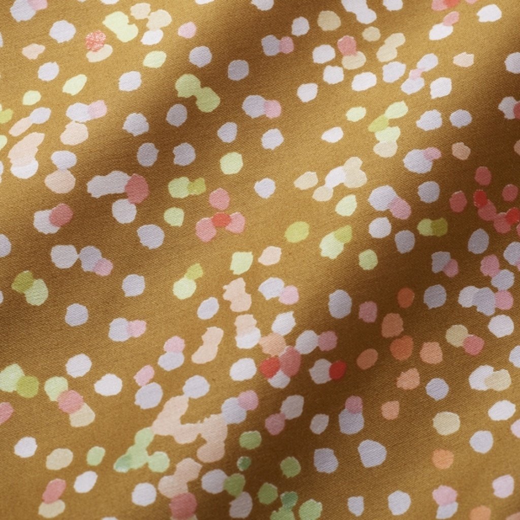 puntíky, nesmí v kolekci nani IRO chybět.....představte si cokoliv....nebe, hvězdy, skicy......tečky budou cokoliv chcete.........nepravidelné shluky puntíků, "zlatý" podklad, puntíky v odstínech losové, zelenkavé, oranžové, růžové....