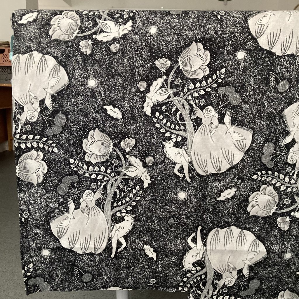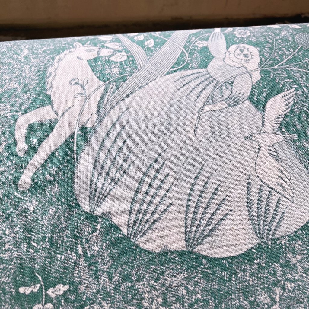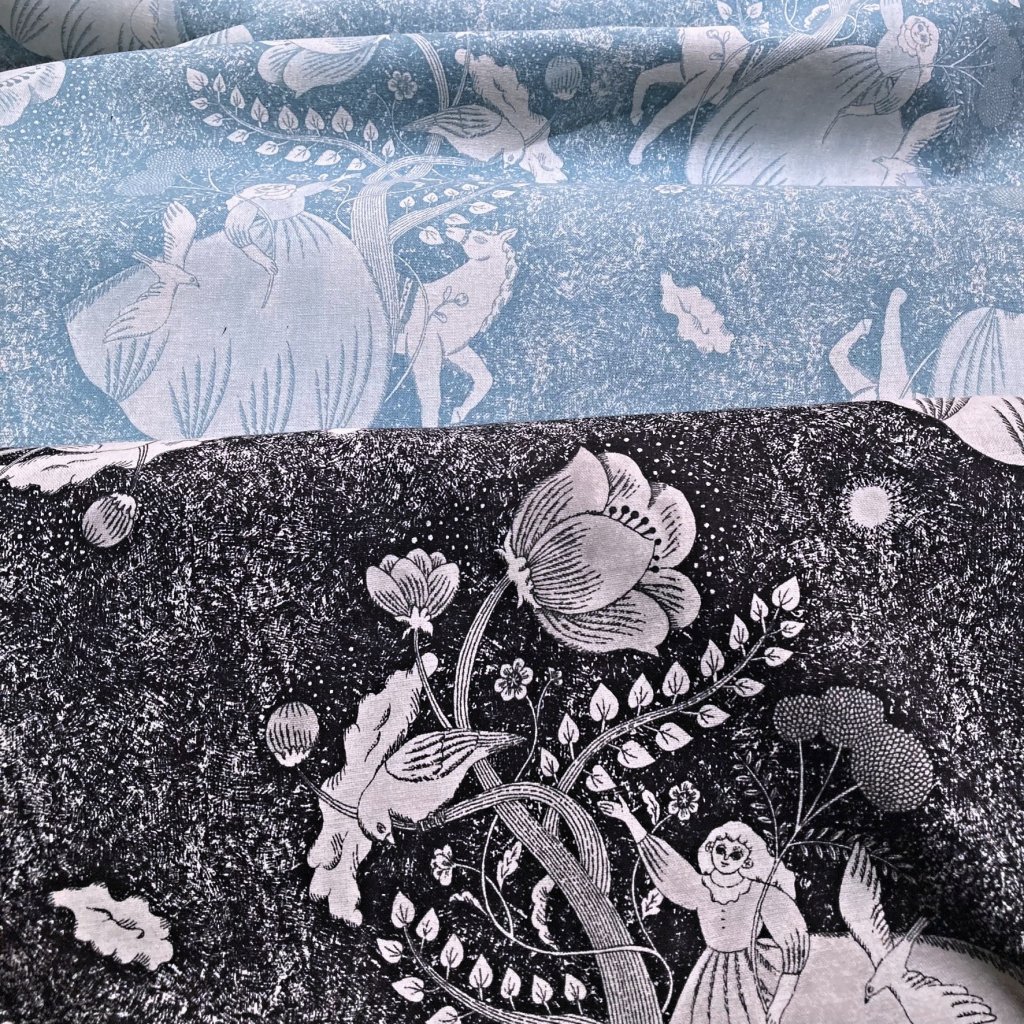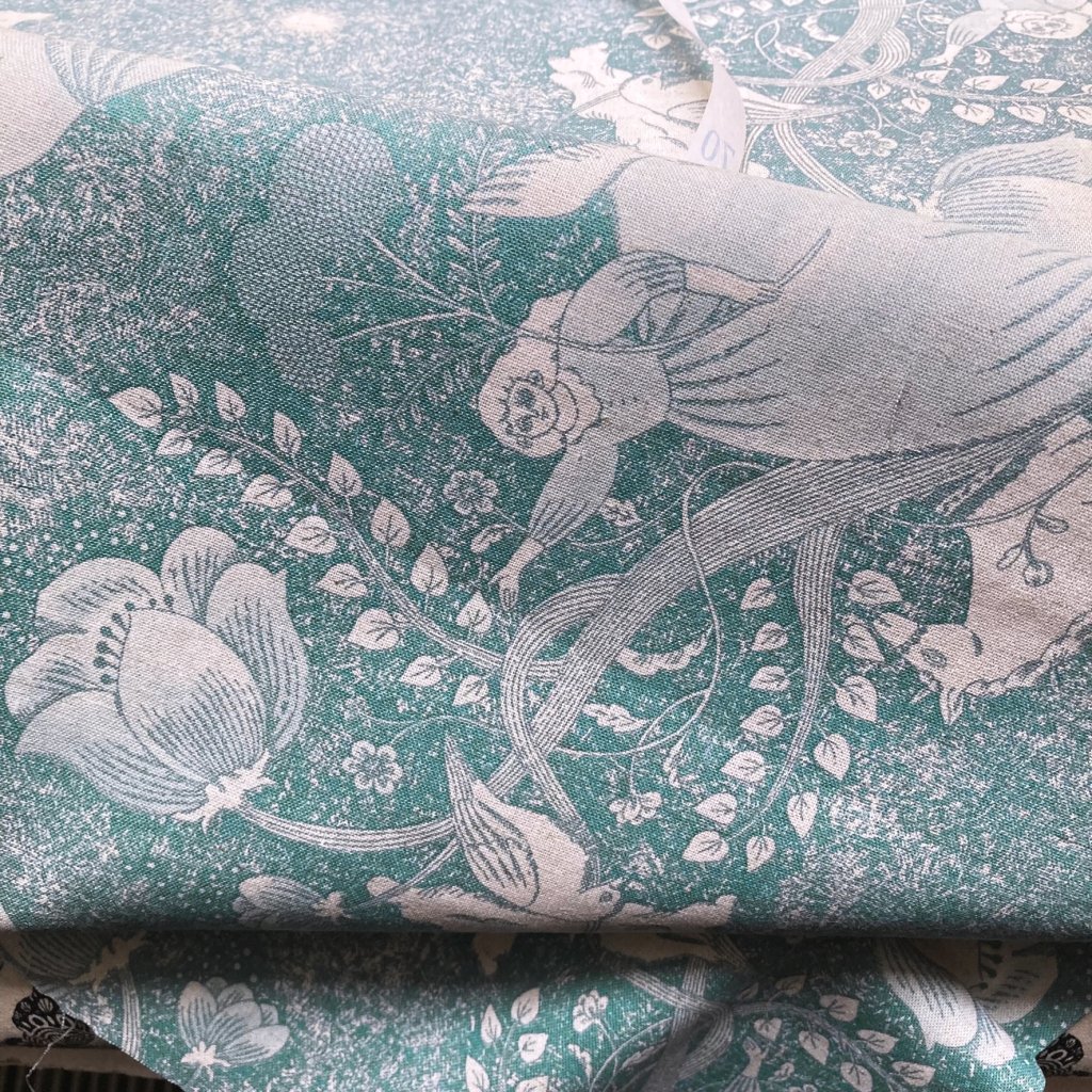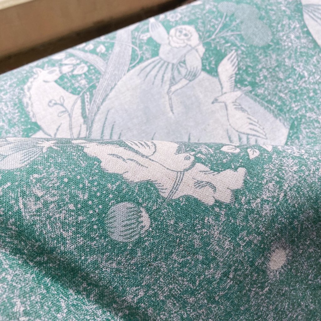 jestli sed dát říci, že látka vypráví příběhy, tak je to rozhodně ty s motivy Sanae Sugimoto....dívka s vlající sukní, koně, ptáci, květy...