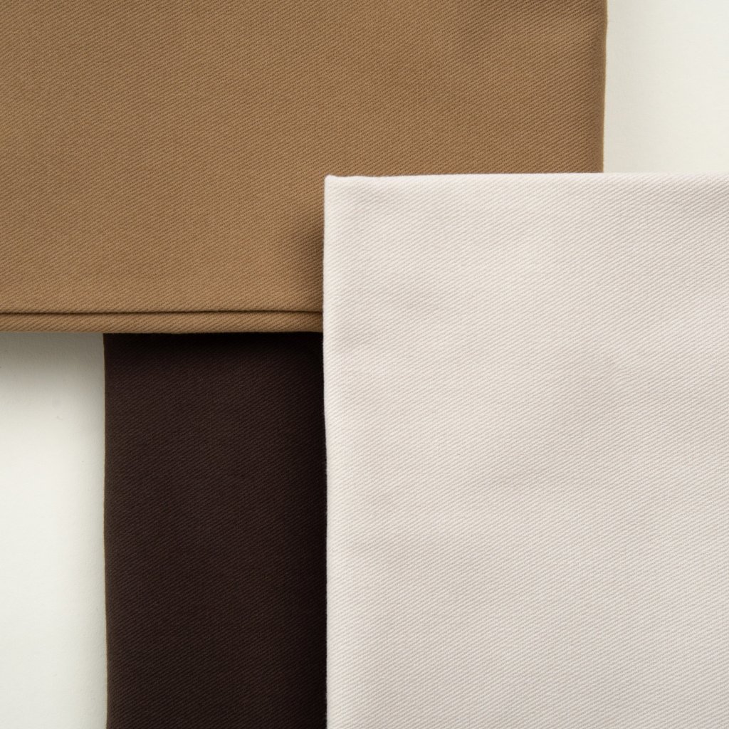 100% bavlna Standard 100 Oeko-Tex and Better Cotton Initiative (BCI) certified, gabardén kepr vazba