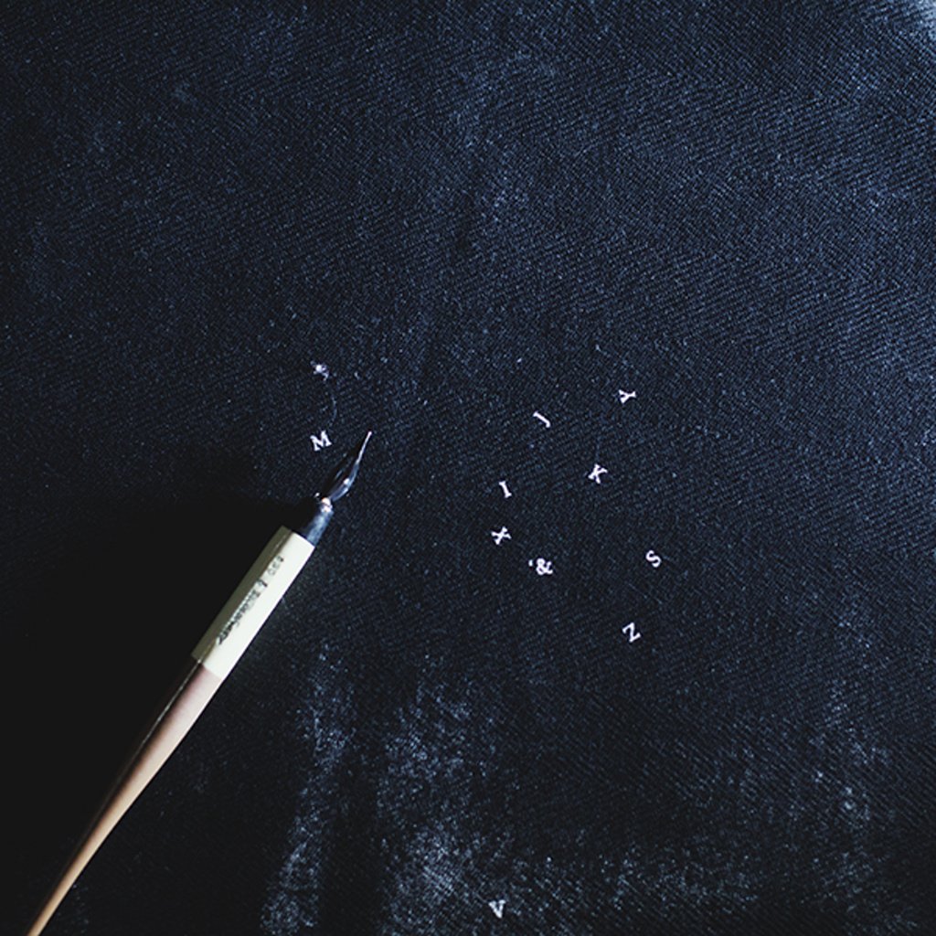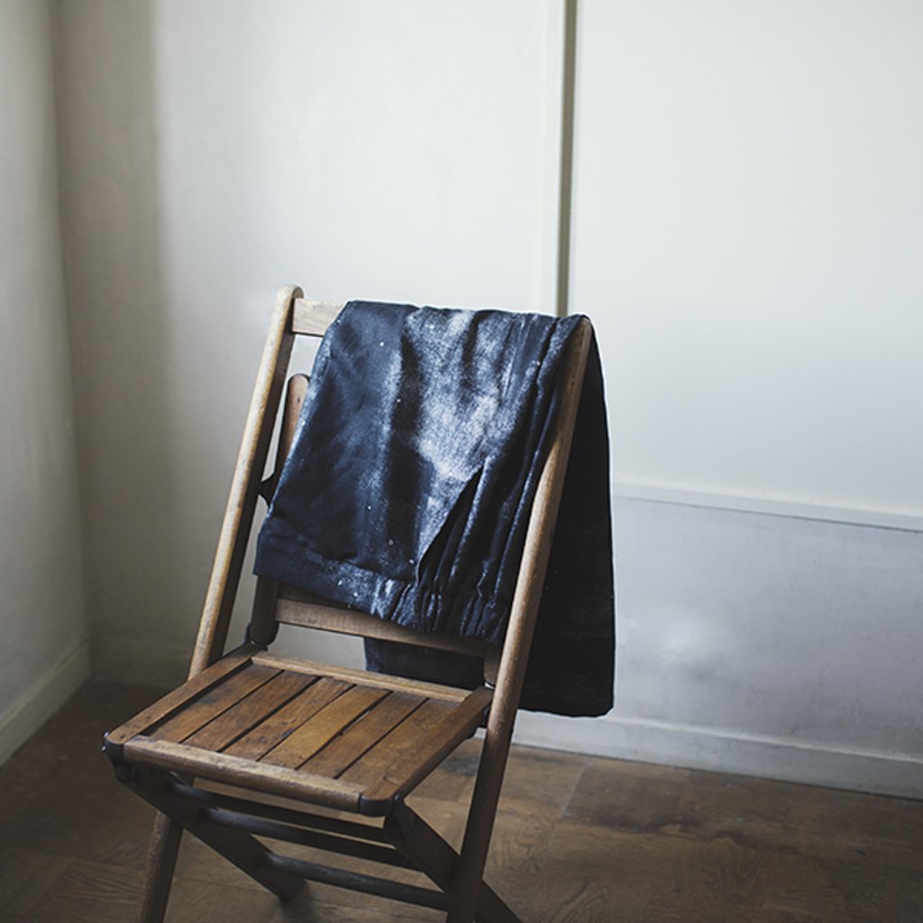 středně těžká směs bavlny a lnu, způsob tkaní vytváří vzor "rybí kosti"........akvarelové tahy štětcem, rozpitá barva a sem tam, jako hvězdy, zatoulaná písmenka.....
