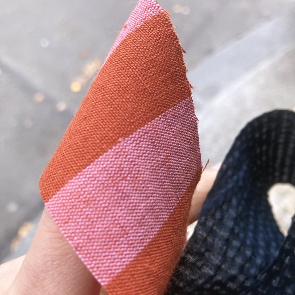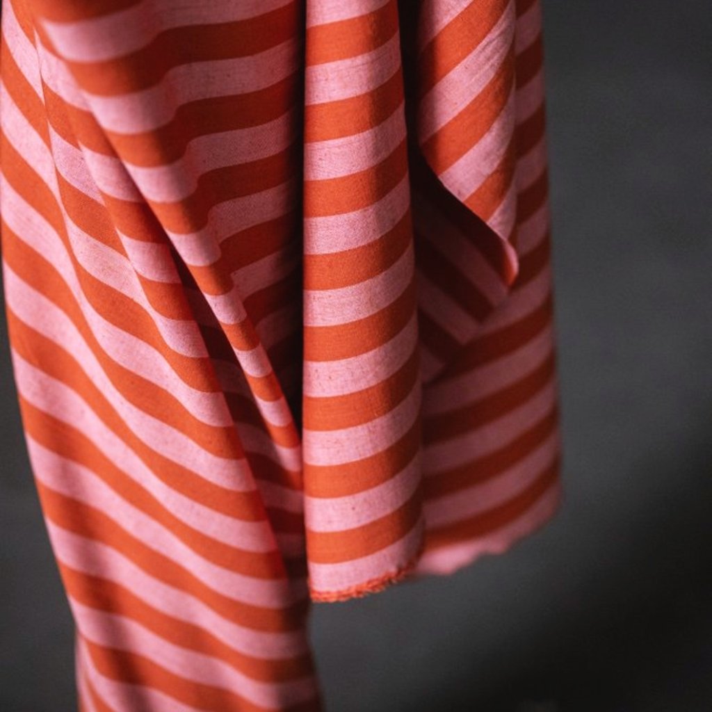 oranžová je spíše terakota, tím, že je látka tkaná a ne barvená, barvy se prolínají a jsou tlumenější, než se na fotkách může zdát...každopádně kombinace růžové a cihlové je dokonalá...my samozřejmě šijeme velkou sukni...