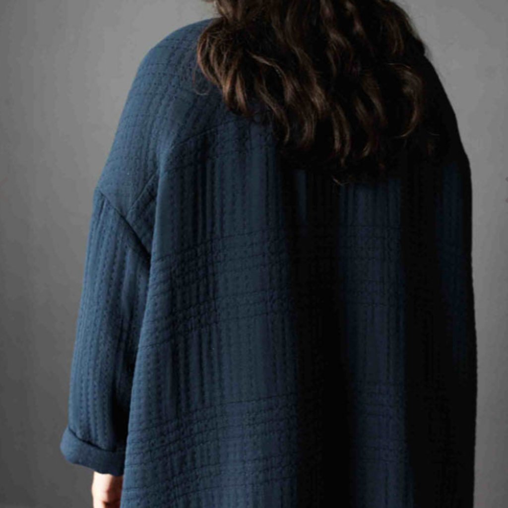 další dokonalá látka z dílny Merchant & Mills....uvádíme prošev, protože nám přišlo označení pro ilustraci nejlepší, ale jak píšeme dál, vrstvená bavlna v žakárově vazbě, která dělá dojem prošitého vzhledu....