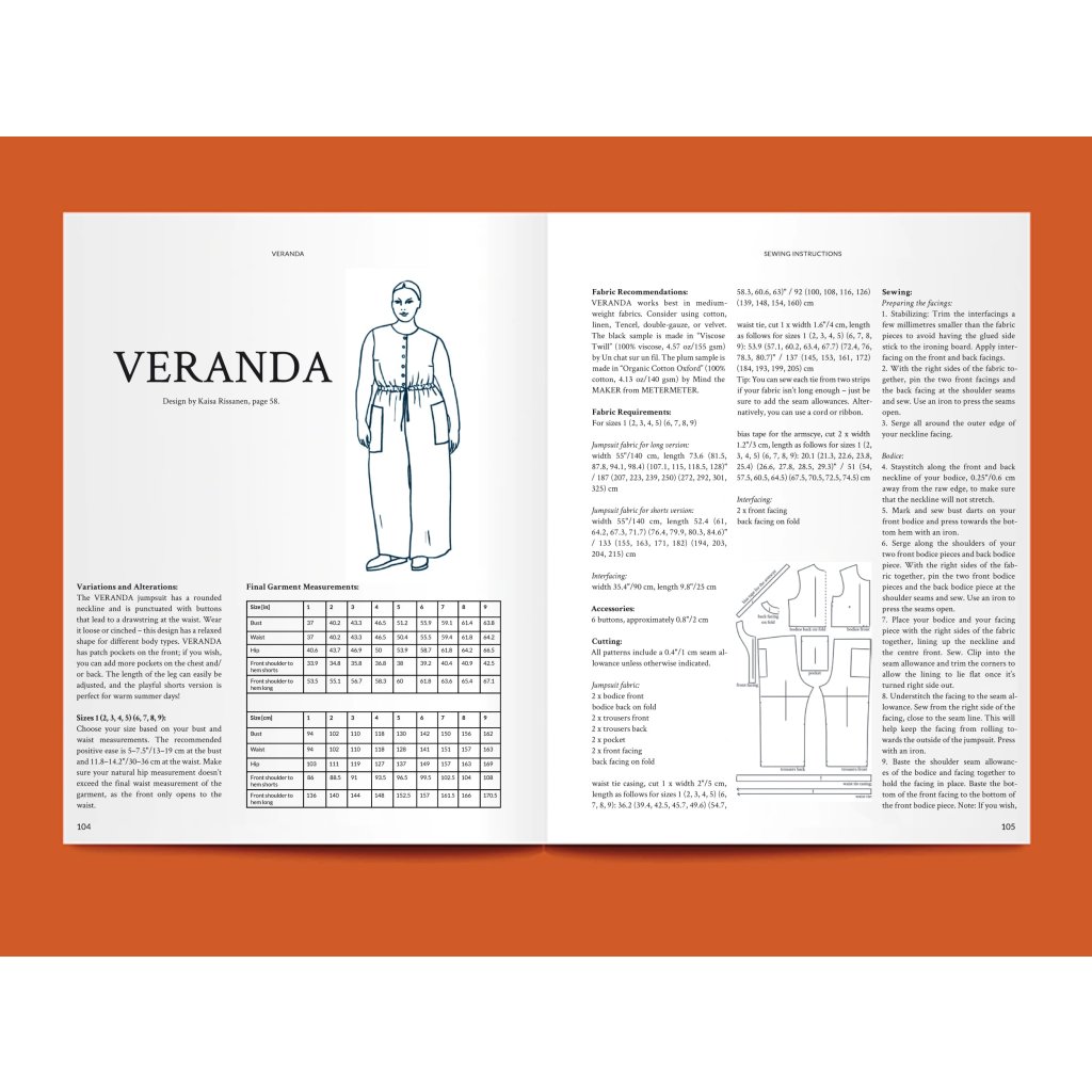 Každé číslo obsahuje více než 10 návrhů šicích vzorů vytvořených známými osobnostmi a nováčky z řad šicí komunity. Pečlivě vybraný výběr zpřístupňuje designové oblečení každému, kdo si chce vyzkoušet šití a naučit se novým dovednostem. Díky papírovým vzorům ve skutečné velikosti, snadným návodům, svižným obrázkům a ilustracím chceme, aby šití bylo pro vás posilující, vzrušující a zábavné. Široký obzor řemesel, kultury a klimatu představují v rozhovorech, rubrikách, článcích, tipech a doporučeních naši zahraniční přispěvatelé.