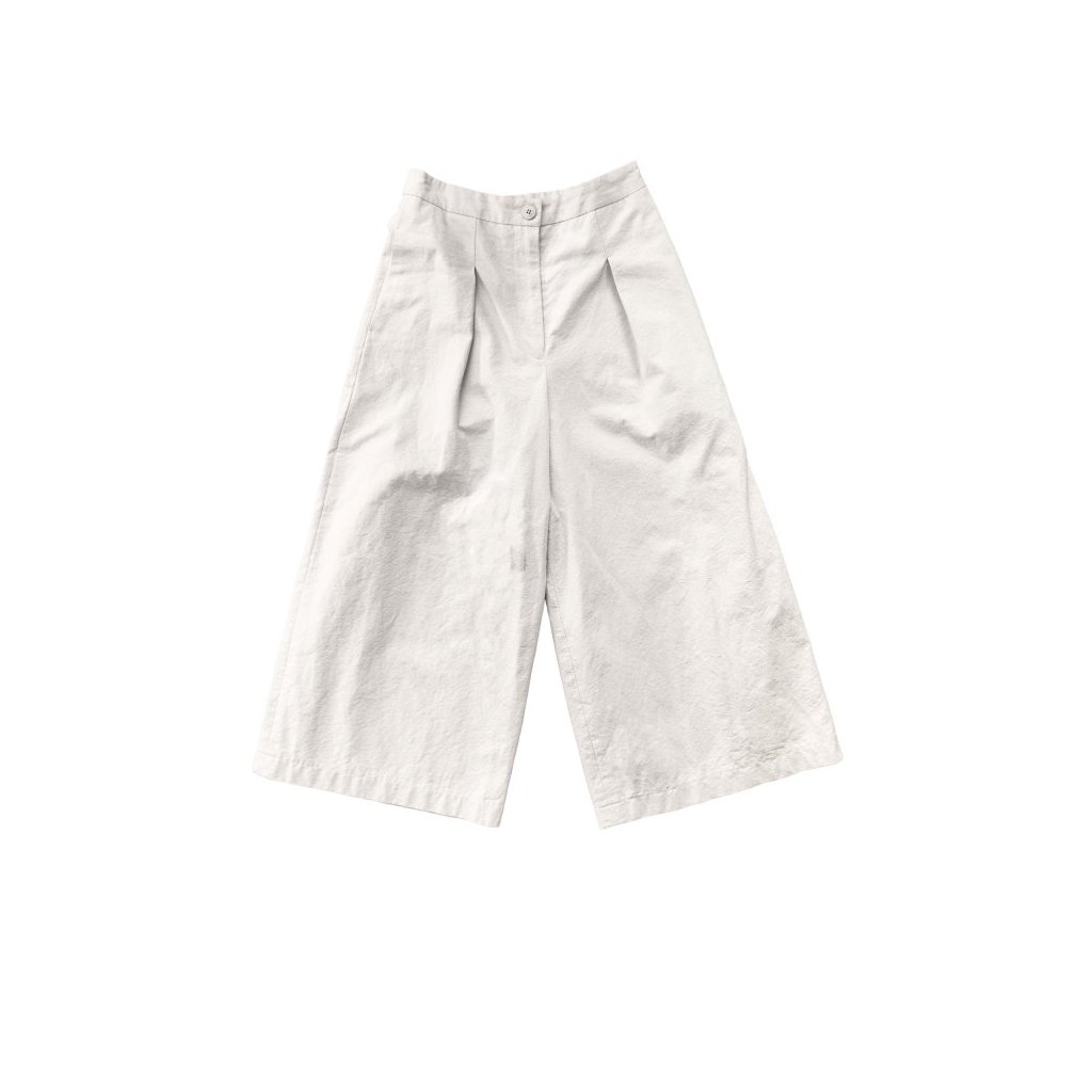 Kalhoty culotte s předními záhyby a elastickým pasem vzadu..