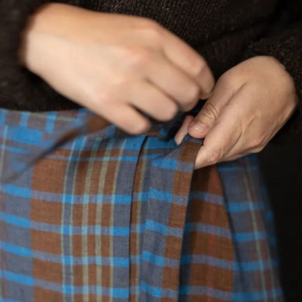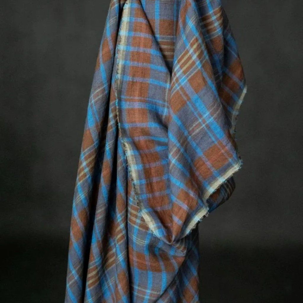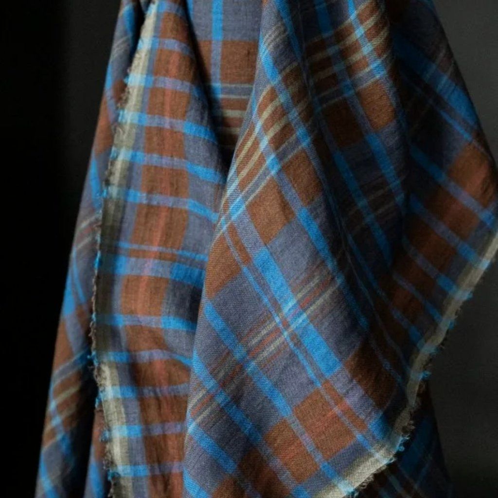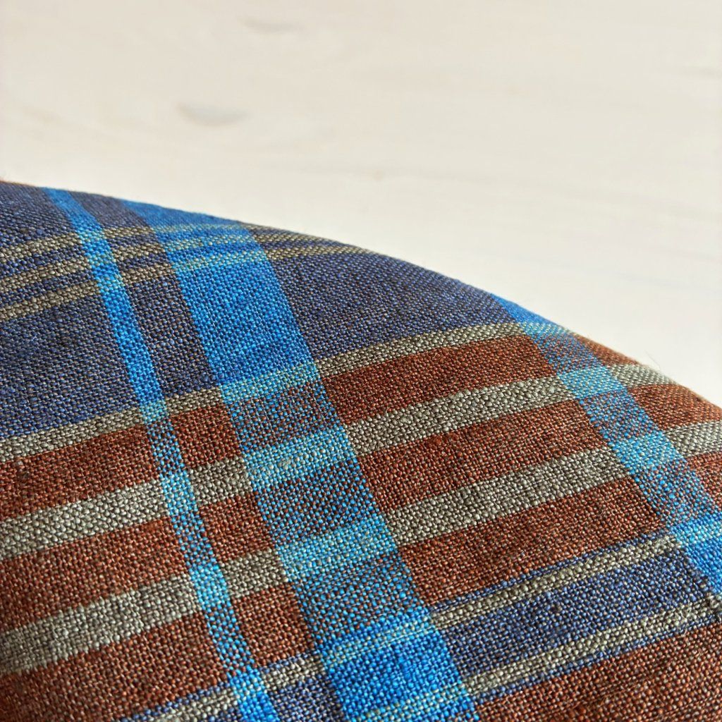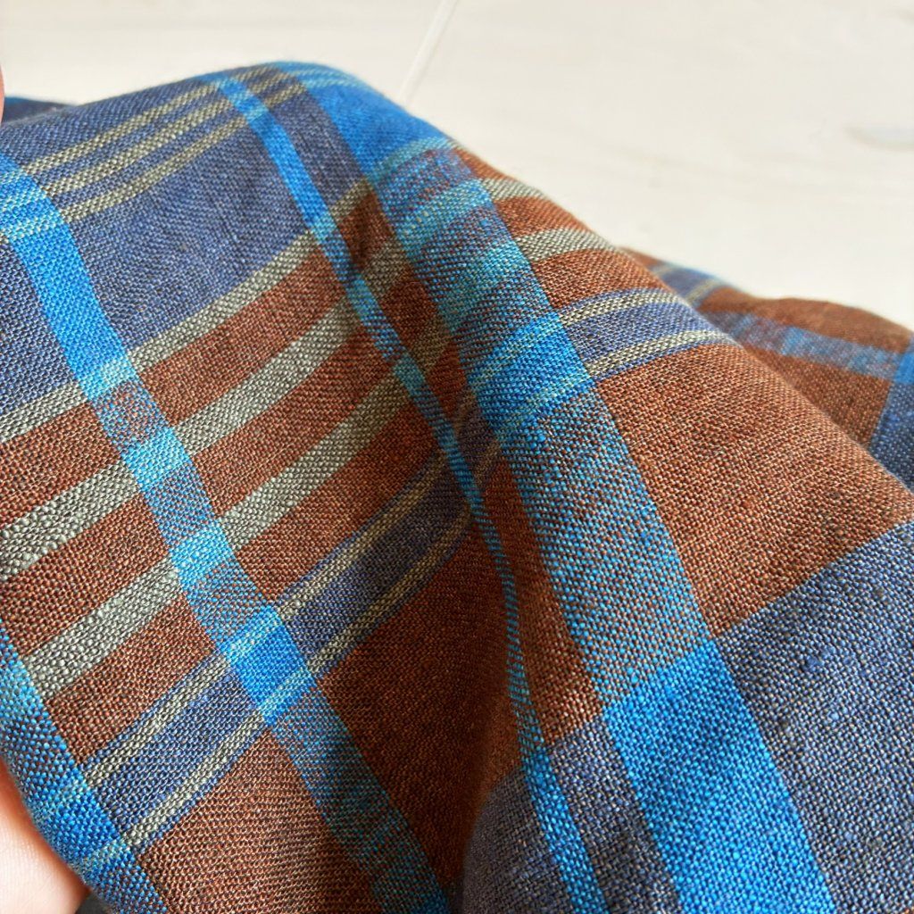krásný tkaný len, základní barvy díky vzájemnému prolínání při tkaní vytváří další odstíny...sytý a jasný odstín modré a spolu s hnědou vytváří dokonaé svěží kombinaci a přitom si zachovávají decentní charakter