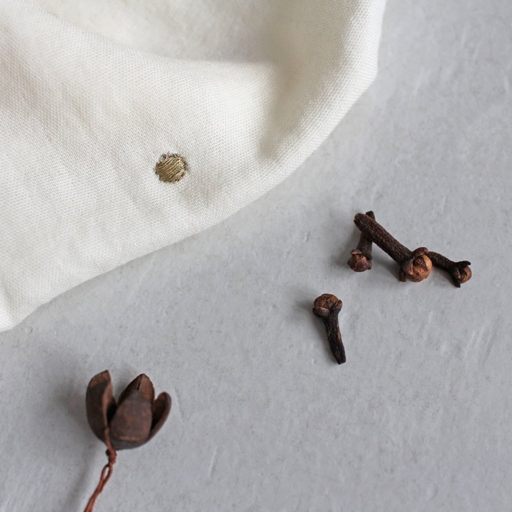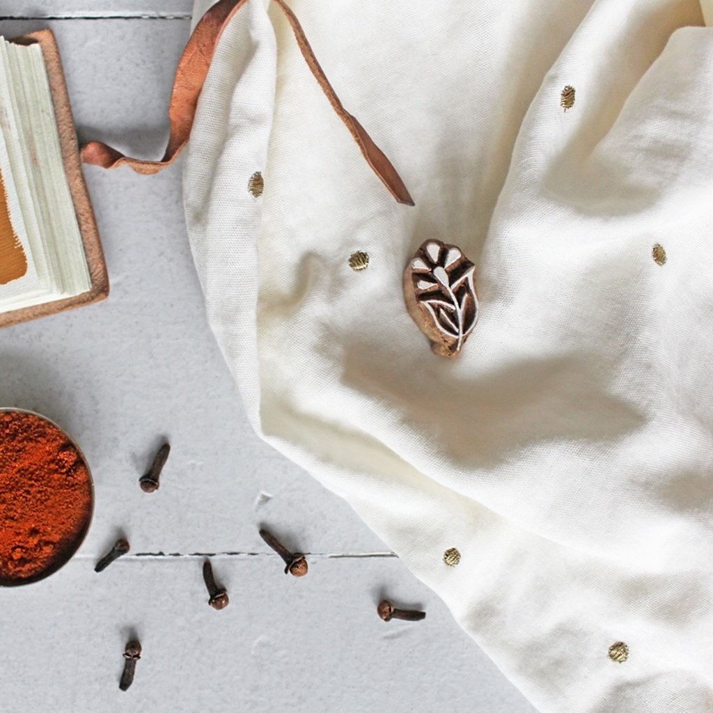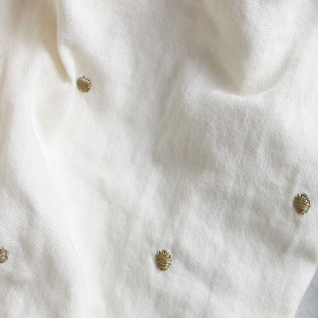 dvojitou gázu v podaní francouzských Atelier Brunette již známe. Stardust, hvězdný prach, akcentuje trendovou výšivku. Barevný podklad se zlatými vyšívanými puntíky.